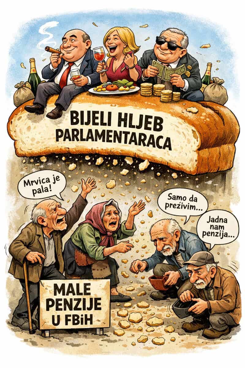 Učinili su to u situaciji kada parlamentarci, u odnosu na prosječne plate, imaju relativno višestruko veća primanja nego bilo koji parlamentarci u Europi, potom još 13 raznih materijalnih beneficija. Samo zbog toga zadržavanje „bijlog hljeba“ je dodatni ekonomsko-politički šamar penzionerima, radnicima, borcima i ostalim socijalnim kategorijama. Šamar je zato što europski prosjek mirovina iznosi 52 posto od prosječnih plata, a u F BiH postojeći prosjek od 680 KM samo 41,1 posto, dok će sa predloženim povećanjem prosjek biti 758 ili 46 posto, a da su vlastodršci osigurali europski prosjek penzija od 52 posto, one bi iznosile 845,5 posto. Predložena rješenja za nove penzionere su znatno gora od postojećih. Znači, predloženo povećanje mirovina, što manipulativni vlastodršci nazivaju značajnim, biće ispod europskih parametara, za razliku od parlamentaraca, koji relativno imaju višestruko veće „ajluke“ od europskih. O statusu boraca je suvišno trošiti riječi. Njihov status je sraman.