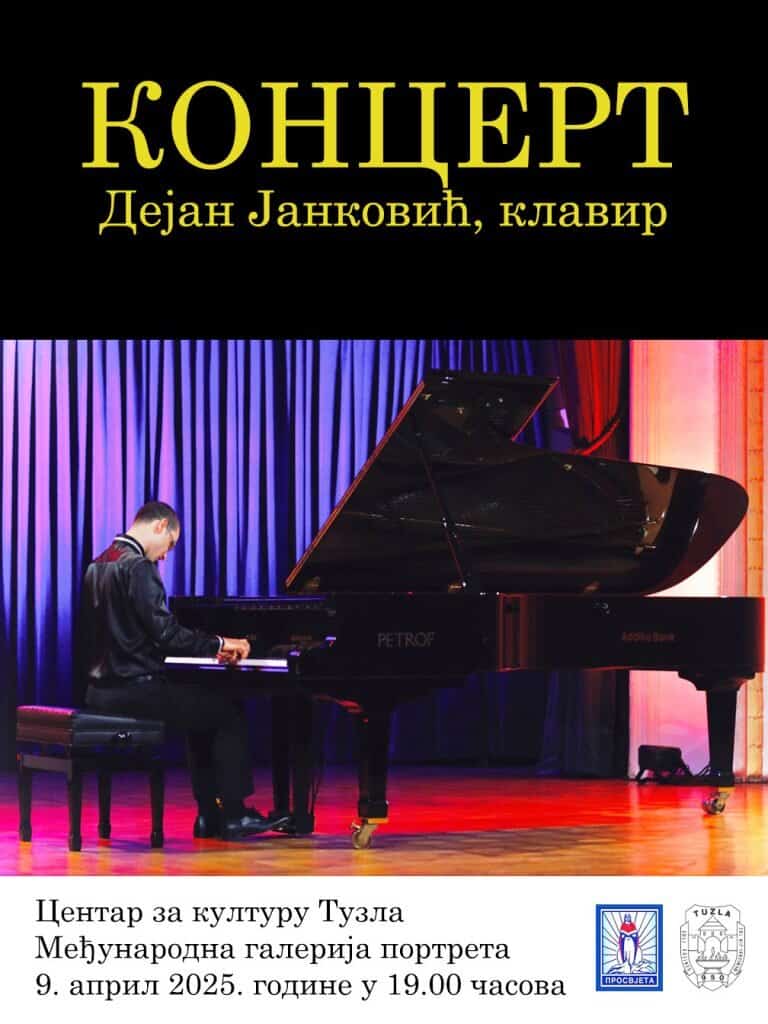 U Međunarodnoj galeriji portreta Centra za kulturu Tuzla najavljeno je održavanje koncerta pijaniste Dejana Jankovića. Na programu su djela Baha, Ramoa, Šumana, Šopena, Rahmanjinova.