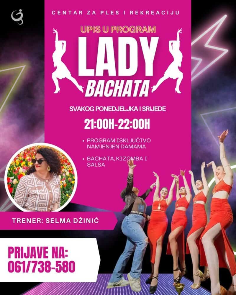 Centar za ples i rekreaciju Tuzla otvorio je upis u plesni program Lady Bachata, koji je namijenjen isključivo ženama i fokusiran na razvoj ženstvenosti, samopouzdanja i izražajnosti kroz plesni pokret.