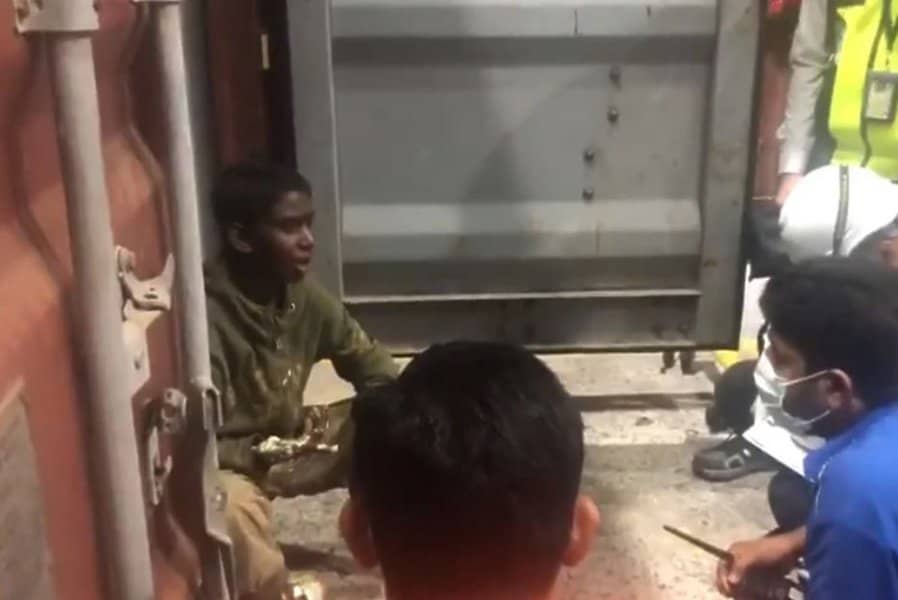 Petnaestogodišnji dječak pronađen je iscrpljen, ali na sigurnom nakon što je zaspao i potom proveo šest dana u brodskom kontejneru. Otkriven je 3.000 kilometara udaljen od mjesta odakle je krenuo.
