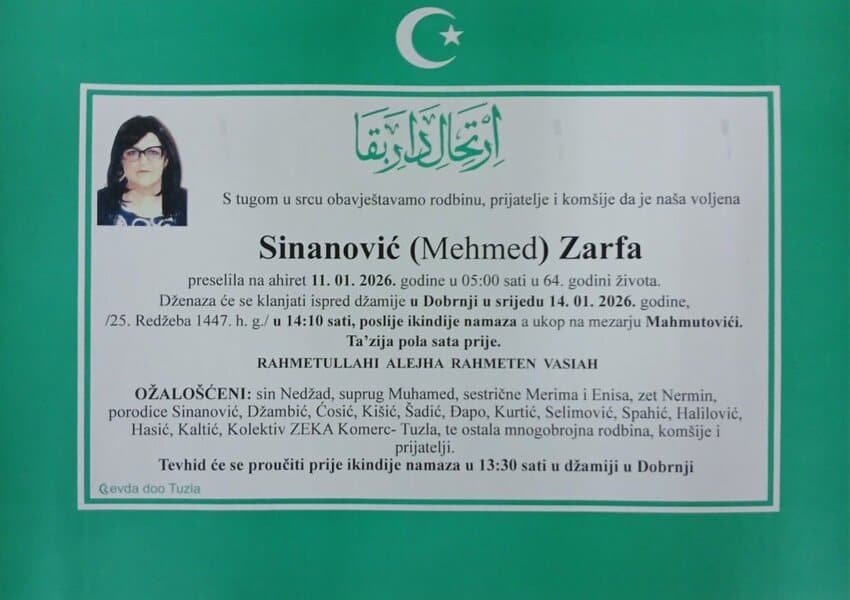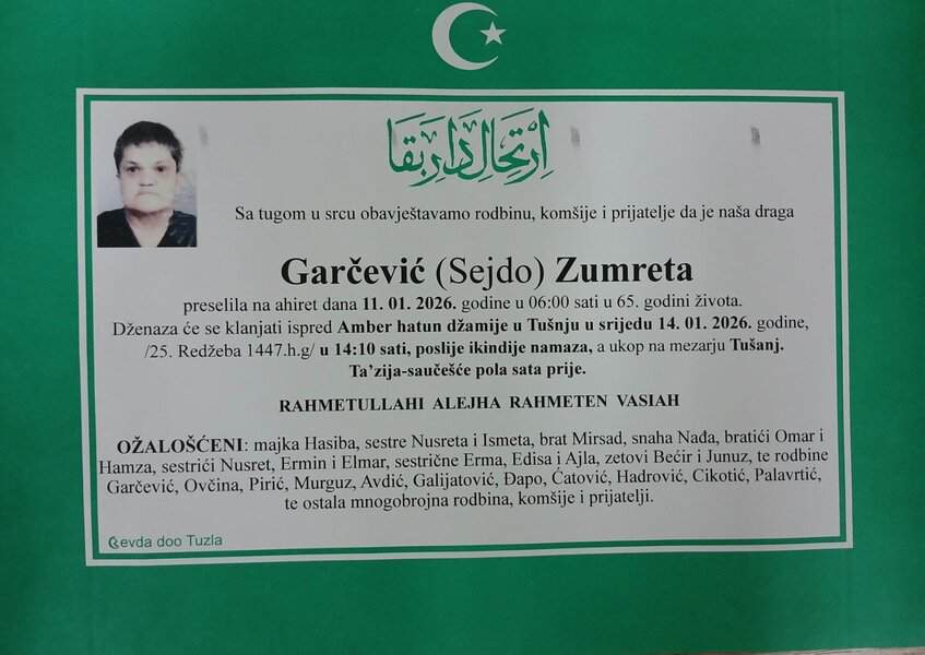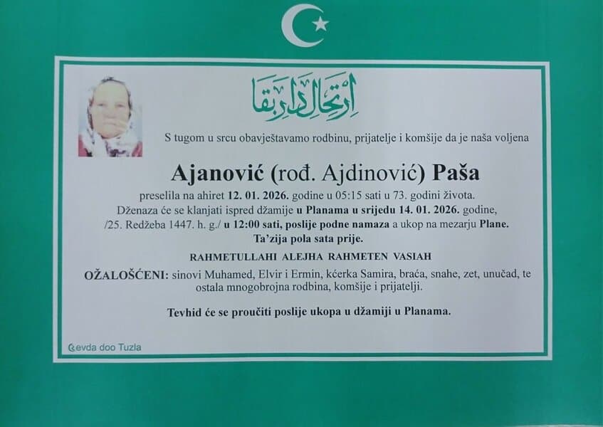 Preminulo je više naših sumještanki, komšinica i prijateljica. Neka je vječni rahmet njihovim dušama. Porodicama saučešće i sabur. Laka im bh. zemlja