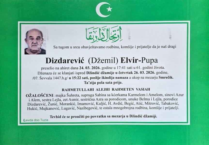 Prerano su preminuli naši sugrađani, prijatelji i komšije, Elvir Dizdarević - Pupa i Semir Omazić. Neka im je vječni rahmet. Laka im bh. zemlja