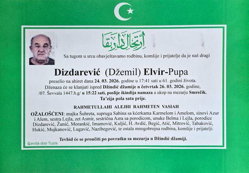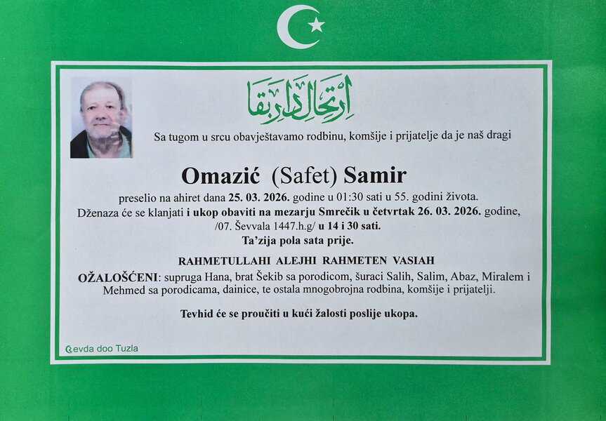 Prerano su preminuli naši sugrađani, prijatelji i komšije, Elvir Dizdarević - Pupa i Semir Omazić. Neka im je vječni rahmet. Laka im bh. zemlja