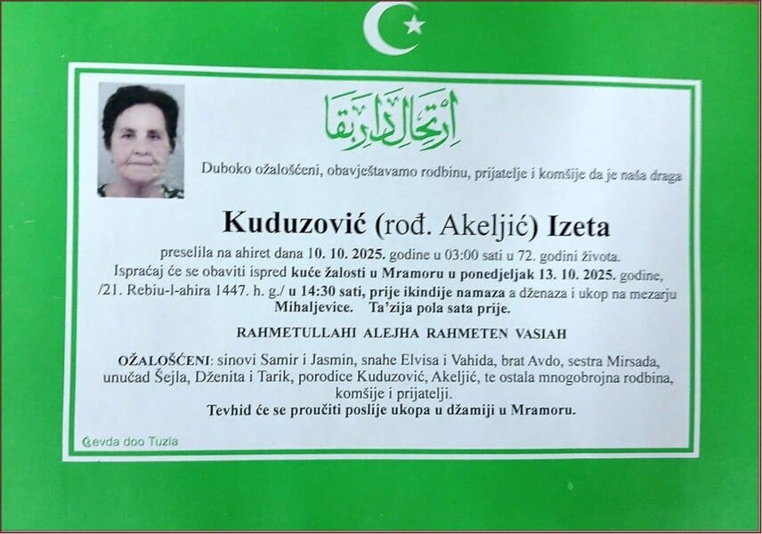 Preminule su naše sumještanke, prijateljice i komšinice. Mir dušama njihovim. Laka im bh. zemlja