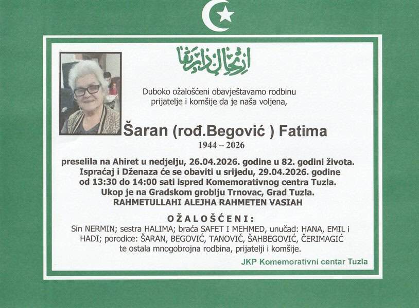 Preminulim sugrađanima, prijateljima i komšijama upućujemo posljednji pozdrav. Neka je vječni rahmet njihovim dušama. Laka im bh. zemlja