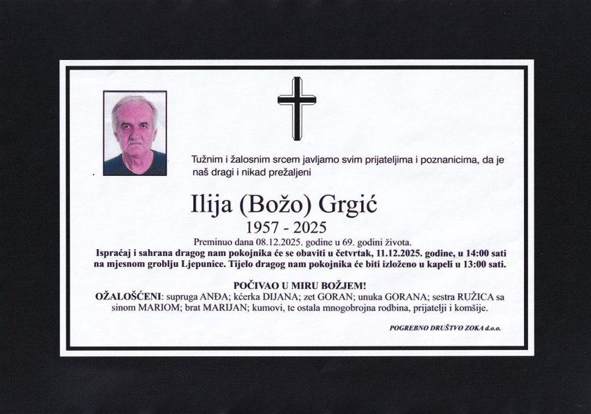 Ispraćaj i sahrana pokojnika obavit će se u četvrtak, 11. decembra 2025. godine, u 14 sati, na mjesnom groblju Ljepunice. Laka mu bh. zemlja