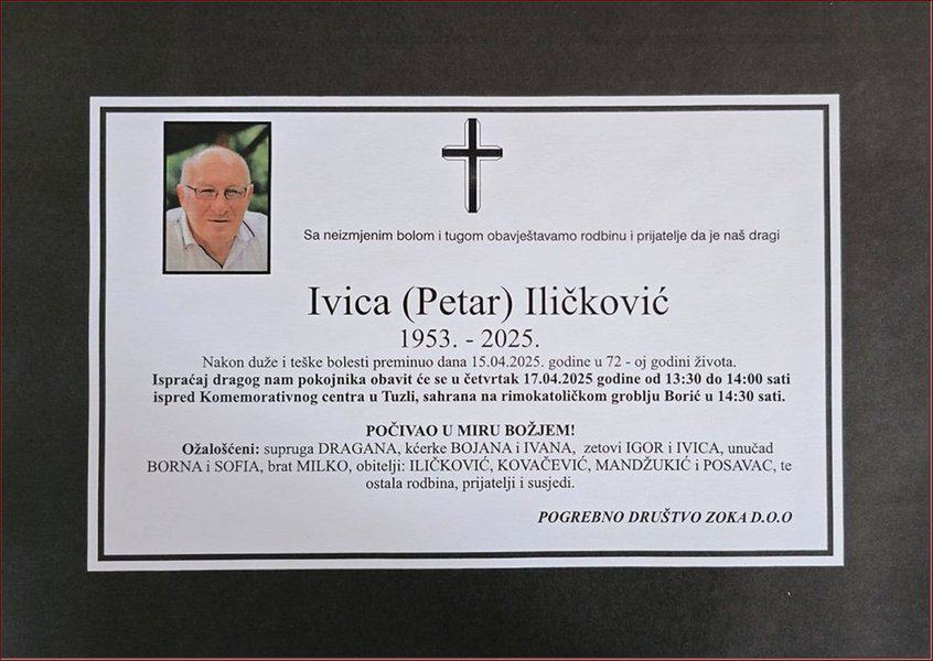Preminuo je naš sugrađanin, prijatelj i komšija, Ivica (Petra) Iličković. Upućujemo mu posljednji pozdrav. Počivao u miru Božjem. Laka mu bh. zemlja