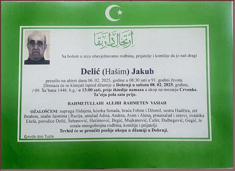 In memoriam: Jakub (Hašima) DELIĆPreselio je na ahiret Jakub (Hašima) Delić. Neka mu je vječni rahmet duši. Laka mu bh. zemlja... Desk07. 02. 2025.In memoriam, Info (Porodici i rodbini upućujemo iskreno saučešće. Portal TuzlaLIVE.ba; Foto: PP Revda Tuzla) Post Views: 315 Podijeli