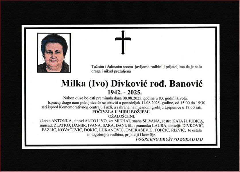 In memoriam: Milka DIVKOVIĆ (Banović)