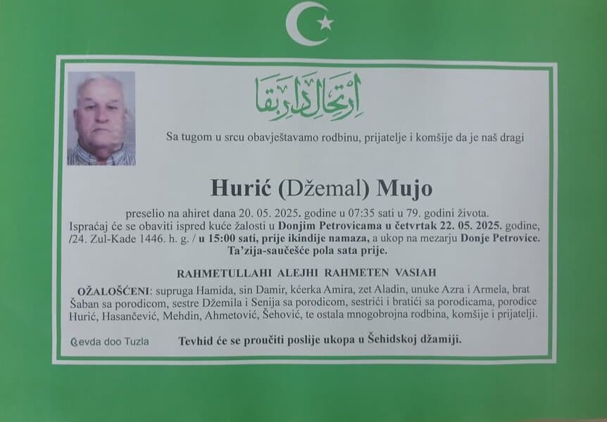 Preselio na ahiret u 79. godini. Vječni rahmet njegovoj duši. Laka mu bh. zemlja...