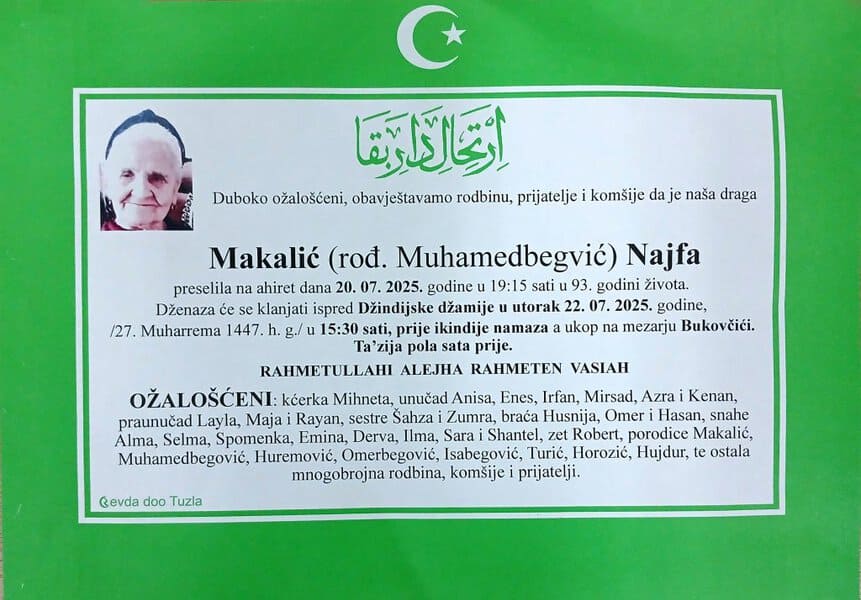 Preminulo je više naših sumještanki i sumještana, prijatelja i komšija. Neka je vječni rahmet njihovim dušama. Laka im bh. zemlja