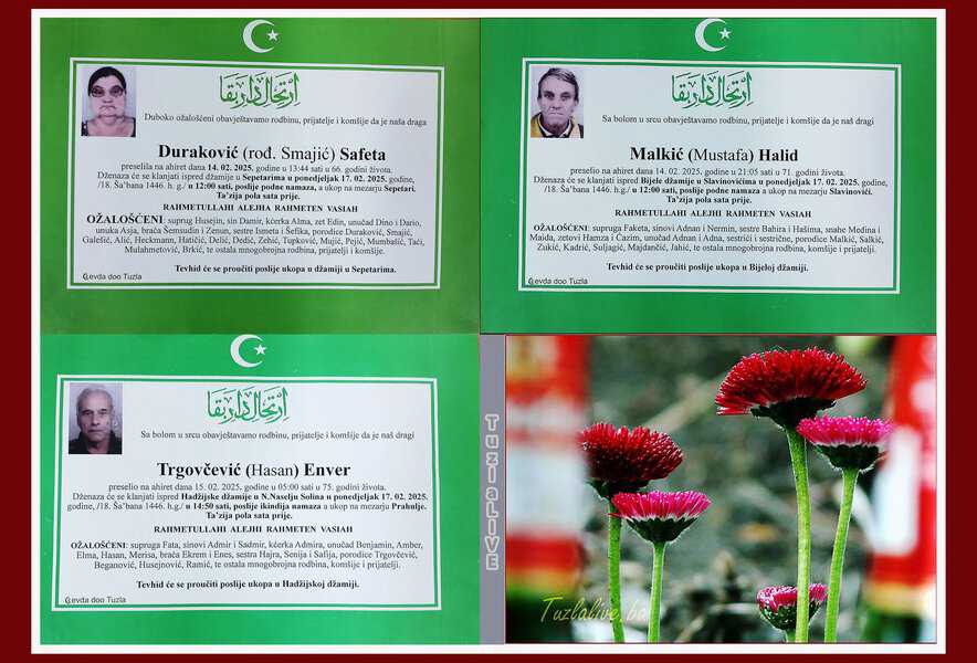Preminulo je više naših sumještana, komšija i prijatelja. Upućujemo im posljednji pozdrav. Mir dušama njihovim. Laka im bh. zemlja...