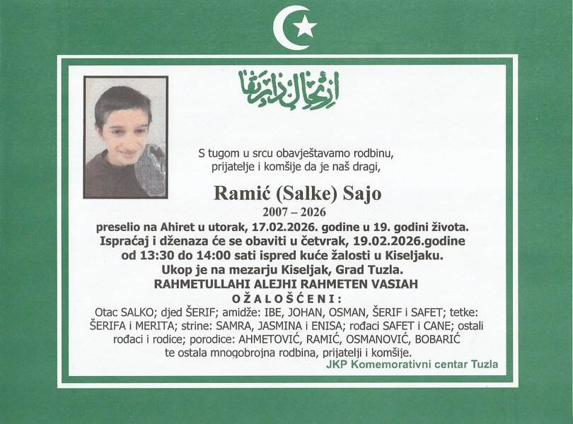 Vrlo mlad je, u 19. godini, preselio na ahiret Sajo (Salke) Ramić. Upućujemo mu posljednji pozdrav. Neka mu je vječni rahmet duši, a laka bh. zemlja