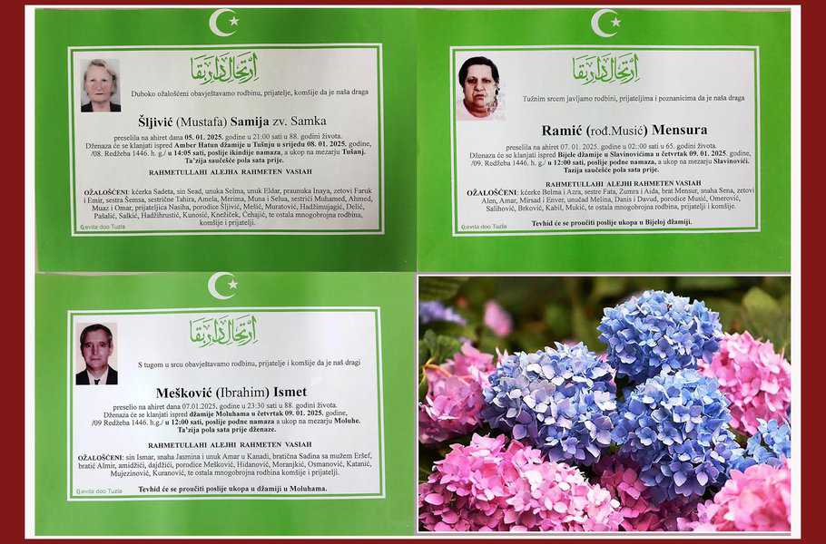 Preminulo je više naših sugrađanki i sugrađana, prijatelja i komšija. Neka im je vječni rahmet duši. Laka im bh. zemlja...