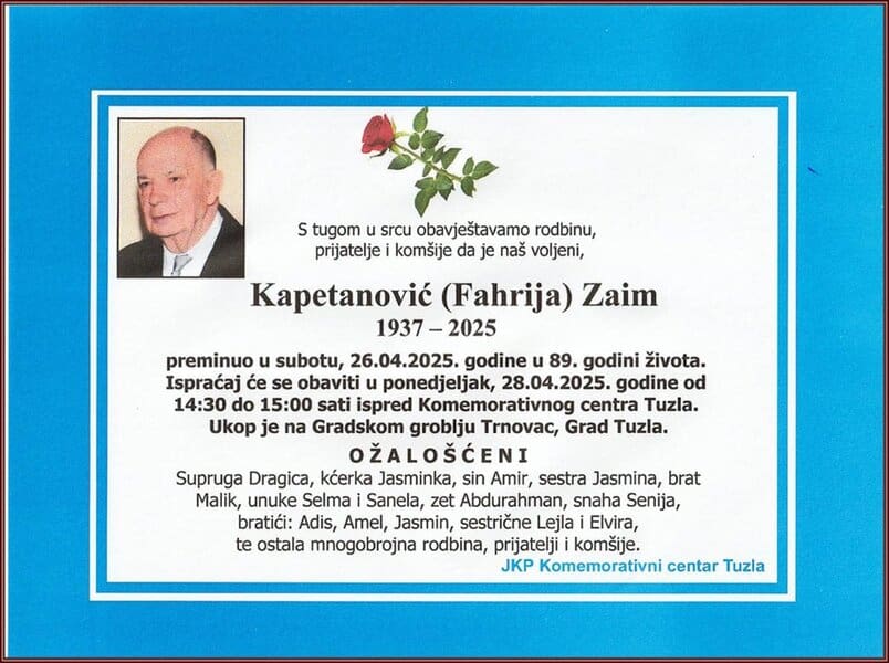 In memoriam: Zaim (Fahrije) KAPETANOVIĆ