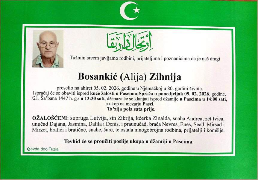 In memoriam: Zihnija (Alije) BOSANKIĆ