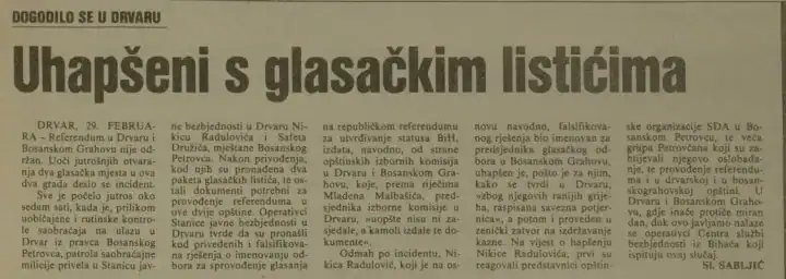 Naslovnica Oslobođenja tog 1. marta 1992. godine glasila je “Odziv veoma dobar” uz pozivanje na izjavu predsjednika Republičke izborne komisije, Mirka Boškovića.