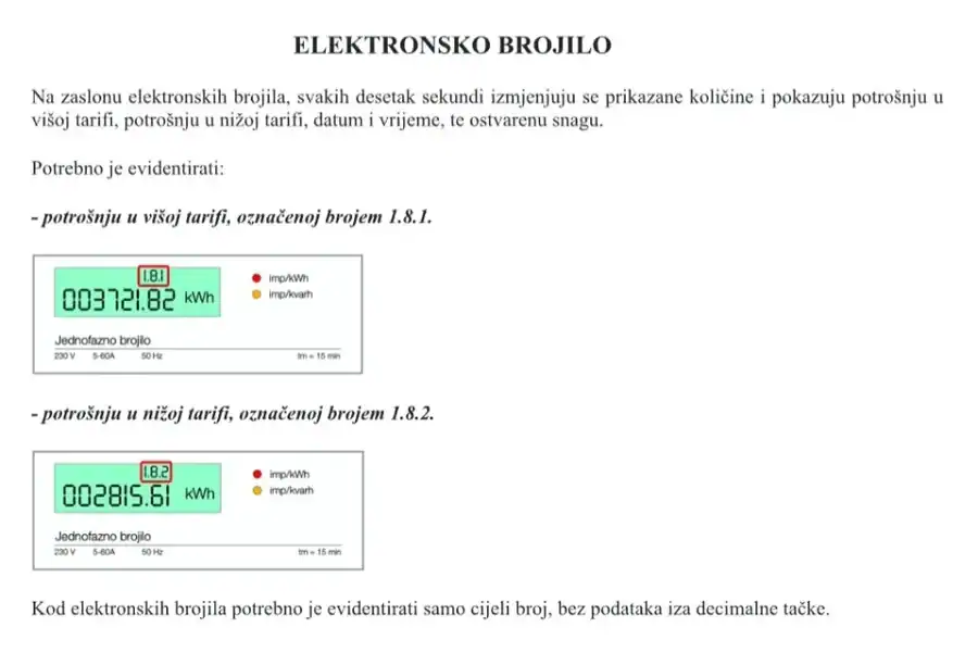 Detaljno uputstvo o očitanju brojila dostupno je na portalu Elektroprivrede BiH.