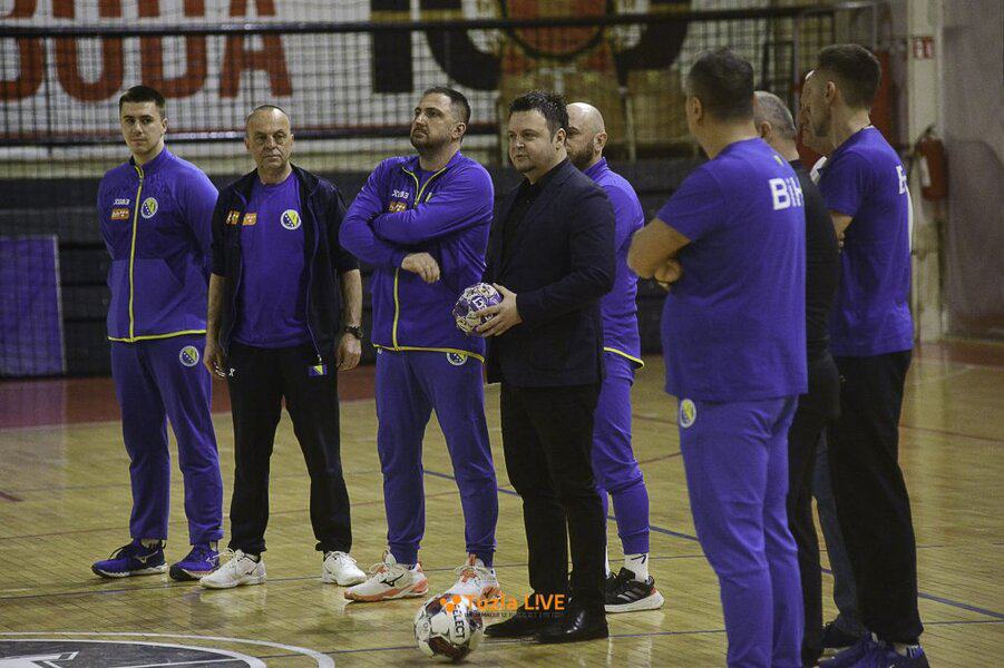 Rukometaši BiH uigravanje privode kraju uz kombinaciju snage u dvoranskoj teretani i taktike u Velikoj sali Mejdana. (tl – Foto: Darko Zabuš)