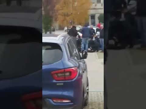Policajci, njih troje, među kojima i jedna policajka, pokušali su smiriti mladića, ali nisu u tome uspjeli. Tokom jednog od pokušaja taj mladić je nožem posjekao policajku, pa su njene kolege prvi put upotrijebile električni pištolj za omamljivanje. Međutim, kako ni to nije pomoglo da se smiri, policija na kraju ispucala nekoliko hitaca.