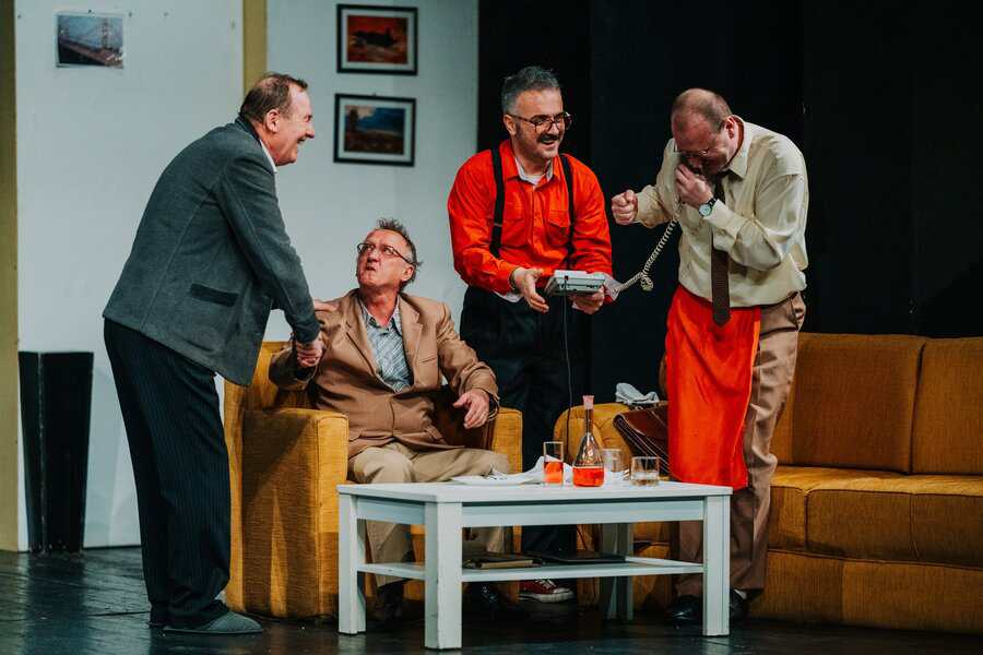 U predstavi igraju izvrsni tuzlanski glumci: Nermin Omić, Elvira Aljukić, Adnan Omerović, Remira Osmanović, Milenko Iliktarević, Jana Miletić i Elvis Jahić.