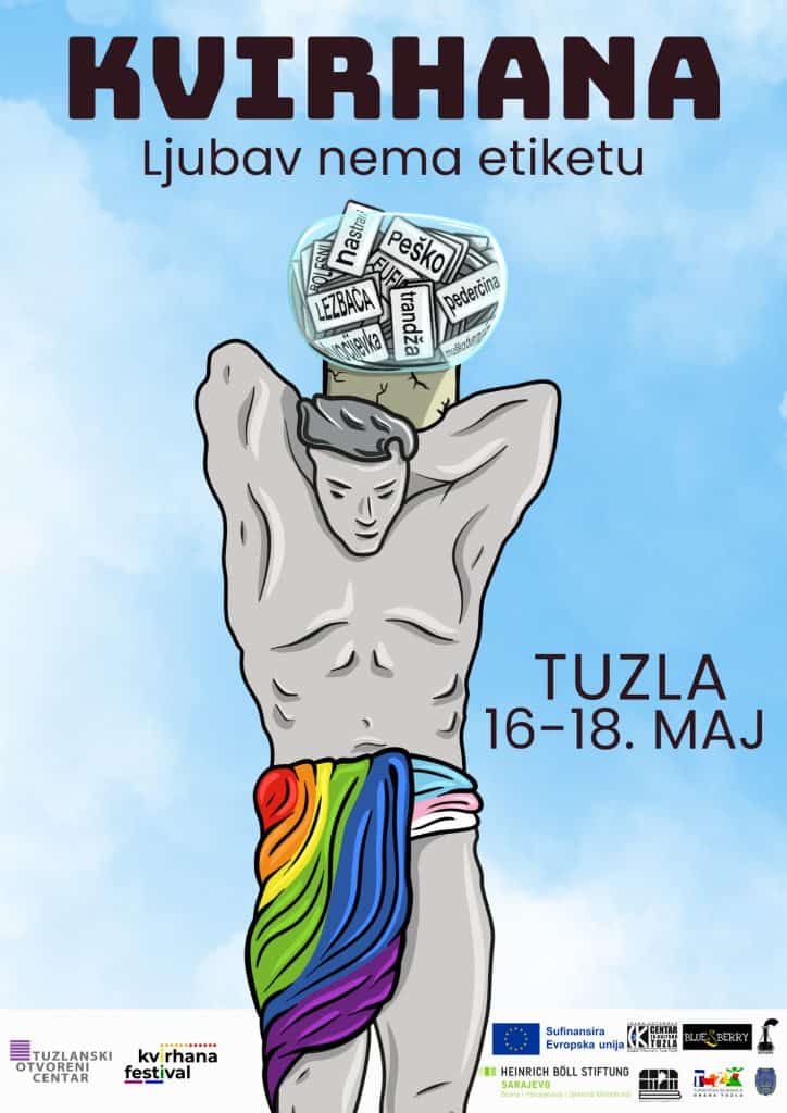 Ovogodišnji vizuali festivala Kvirhana donose snažnu i simboličnu poruku kroz poznati tuzlanski kip s mosta „Kipovi“, koji je odabran kao predstavnik grada, ali i kao širi simbol slobode, borbe protiv nepravde i antifašističkog naslijeđa koje Tuzla njeguje.