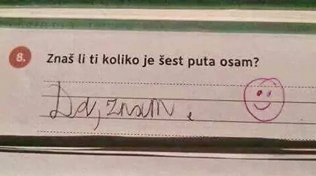 Na pitanje znali li koliko je šest puta osam učenik nije odgovorio tačnim brojem, već sa “da, znam.”