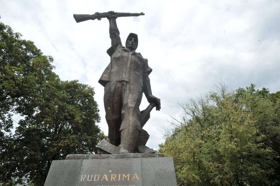 Spomenik Husinskom rudaru, djelo kipara Ivana Sabolića, postavljen je 1955. godine u tadašnjem parku Radničkog doma Moša Pijade (danas BKC TK). Skulptura visoka 8,6 metara, izrađena od patinirane bronze, posvećena je rudarima stradalim u Husinskoj buni i radničkoj borbi.