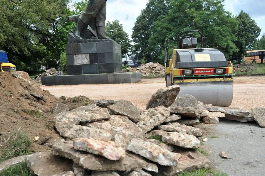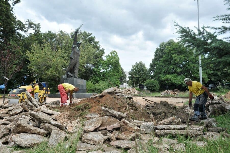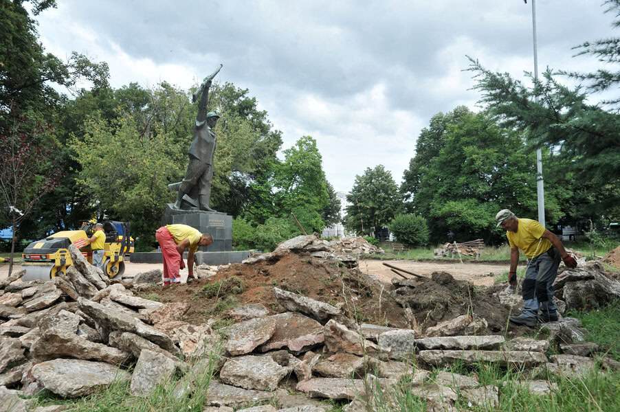 jucer su u tuzli poceli radovi na sanaciji parka kod bkc-a u kojem se nalazi spomenik husinskom rudaru