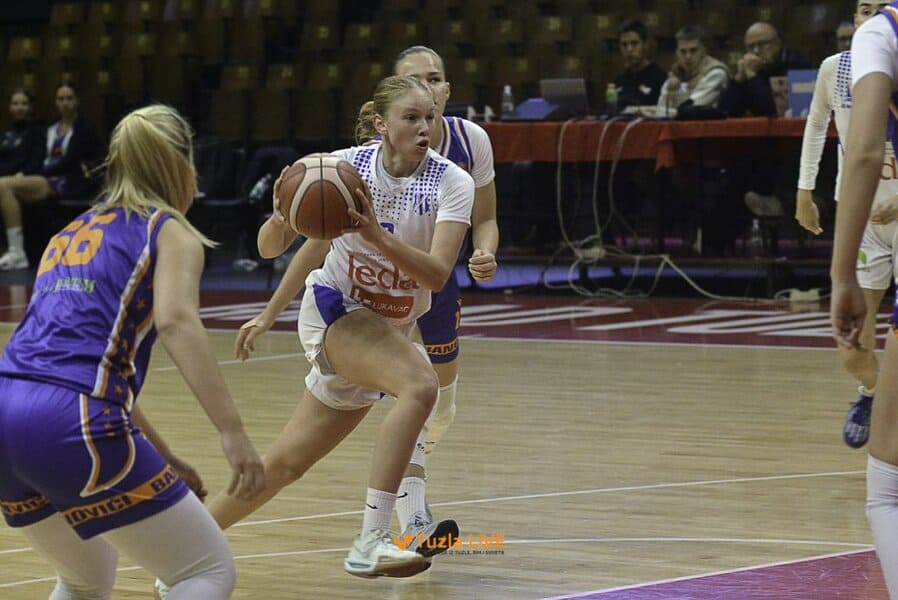 U pobjedničkom sastavu Yarelli Padilla postigla je 22 poena, Melika Mujkić 17, a Zerina Kurtić 13 poena. Trener gošći Admir Đerzić tokom utakmice na parket je uvodio samo šest igračica i sve su se upiale u strijelce. (tl – Foto: Darko Zabuš)