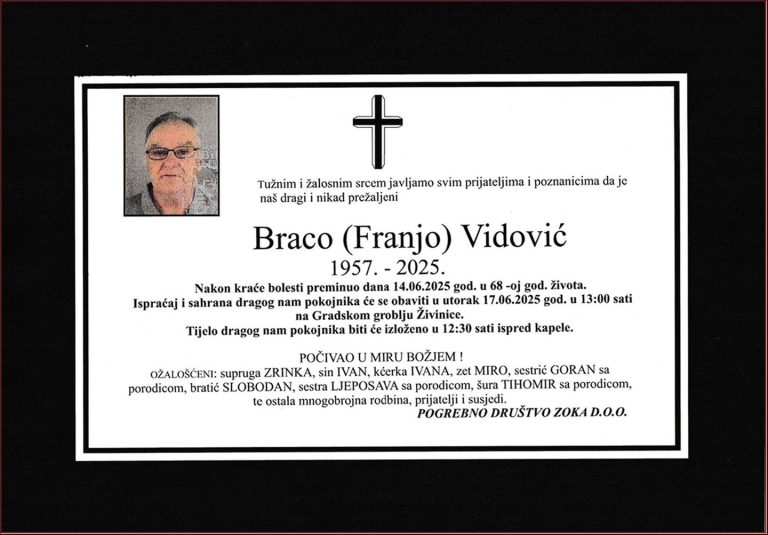 Ispraćaj će se obaviti u petak, 19. decembra 2025. godine, u 12:00 sati, ispred kuće žalosti u G. Dragunji. Počivao u miru Božjem. Laka mu bh. zemlja