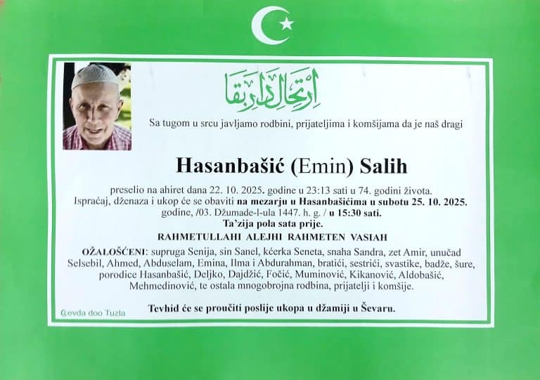 Preselili su na ahiret Zarfa JUKIĆ (Saračević) i Salih (Emina) HASANBAŠIĆ. Neka je vječni rahmet njihovim dušama. Laka im bh. zemlja