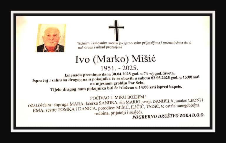 Ispraćaj će se obaviti u subotu, 3. maja 2025. godine u 15:00, ispred kuće žalosti u Kiseljaku. Dženaza će biti obavljena na mezarju Kiseljak, Grad Tuzla