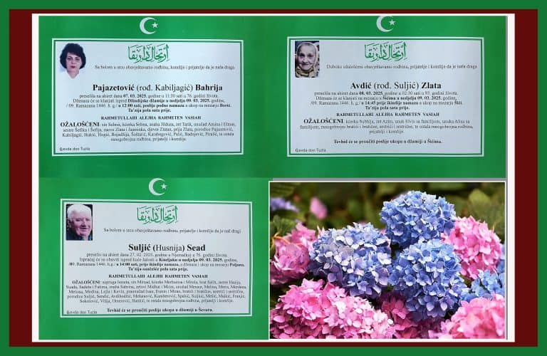 Napustilo nas je više sugrađanki, prijateljica i komšinica. Upućujemo im posljednji pozdrav. Neka je vječni rahmet njihovim dušama. Laka im bh. zemlja...