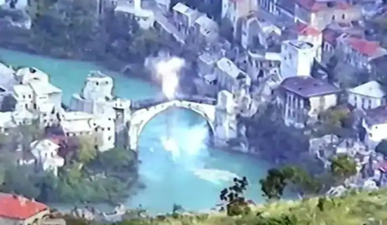 Rušenje Starog mosta počelo je dvadesetak dana ranije, a najžešće granatiranje dogodilo se 8. i 9. novembra. Gađan je s položaja na planinskim visovima Planinice i Stotine, a granate su pogađale ne samo most nego i kule Taru i Halebinku, koje su bile statički oslonac njegovom luku