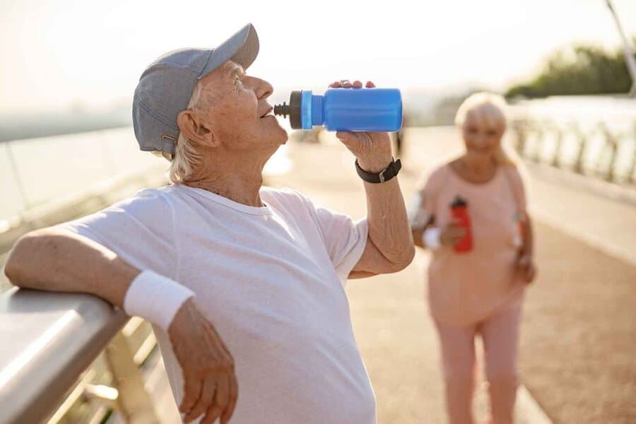 Kod starijih ljudi osjećaj žeđi može biti oslabljen, pa je važno piti vodu redovno, čak i bez osjećaja žeđi. Treba izbjegavati alkoholna pića i napitke koji sadrže kofein, jer oni ubrzavaju dehidraciju. Uz tečnost, preporučuje se i unos namirnica bogatih vodom, poput lubenice, krastavaca i narandži.