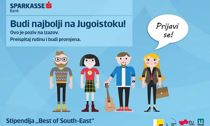 Prijave za program stipendiranja „Best of South East“, koji provodi Sparkasse banka u saradnji s austrijskom matičnom kućom Steiermärkische Sparkasse i Univerzitetom Graz, ponovo su otvorene za talentirane studente i diplomante iz BiH, koji pohađaju fakultet pravnog, ekonomskog ili tehničkog usmjerenja, geologije, metalurgije i muzičke akademije.