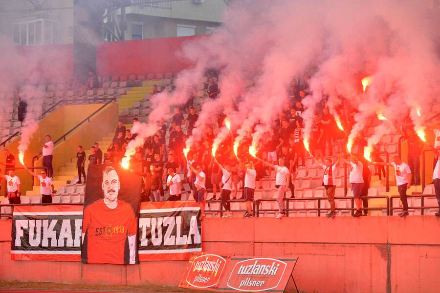 Poseban emotivan trenutak obilježio je prvo poluvrijeme kada su domaće navijačke grupe, Fukare, bakljadom odale počast preminulom Vedranu Tahiroviću.