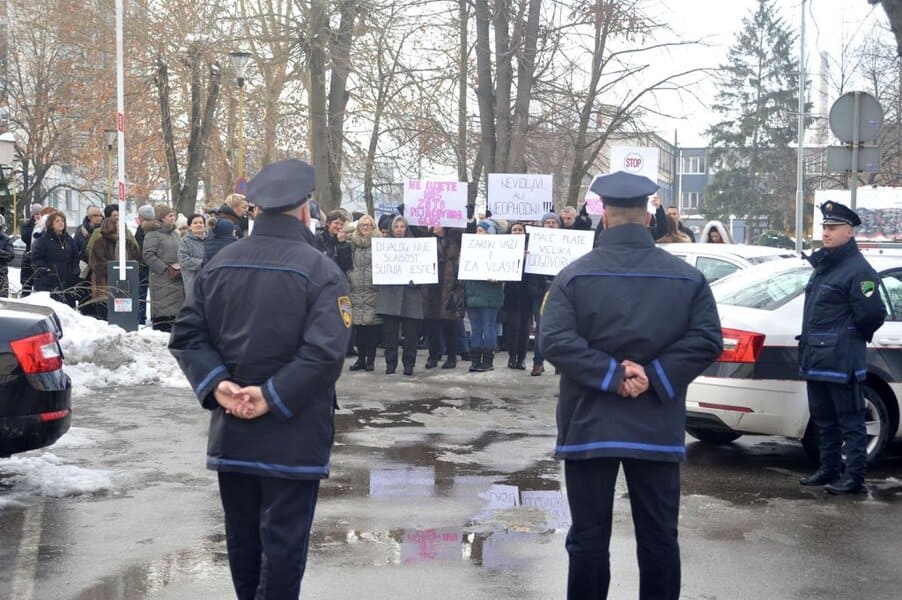 Administrativno i tehničko osoblje zaposleno u pravosudnim institucijama Tuzlanskog kantona danas je održalo protest ispred zgrade Vlade TK, izražavajući nezadovoljstvo zbog neispunjenih zahtjeva.