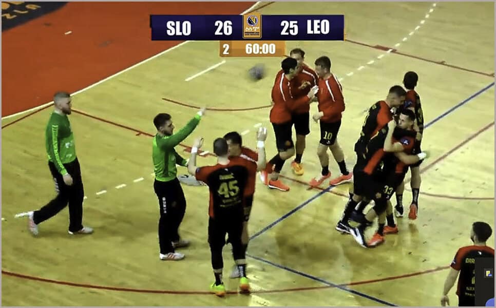Naime, Sloboda je u 55. minuti imala tri gola prednosti (25:22), a tri minute prije kraja bilo je na semaforu 26:24. Dosuđen je ‘sedmerac’ za Suhonjićevu ekipu, Ante Dragičević je pogodio golmana Miloša Kneževića , ali na sreću je lopta otišla u aut. U novom napadu Ermin Ombaša u dobroj prilici šutira, ali golman Leotara ponovo brani.