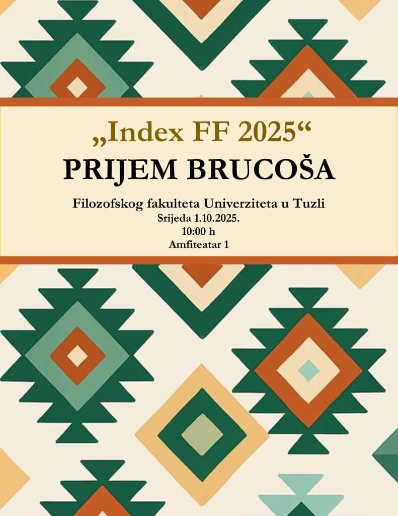Filozofski fakultet Univerziteta u Tuzli u srijedu, 1. oktobra 2025. godine, u 10 sati, u amfiteatru A1 organizira prijem brucoša.