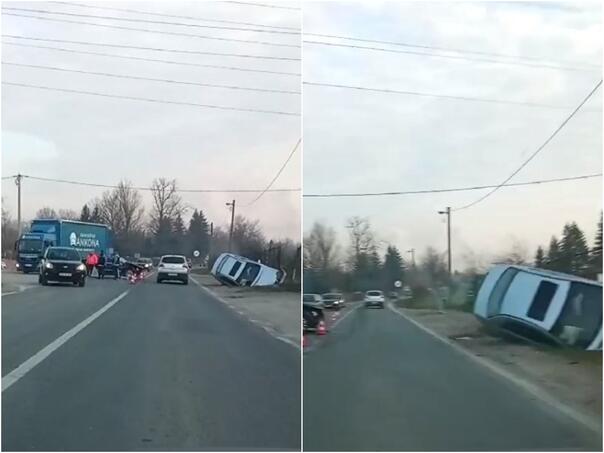 U udesu je načinjena značajna materijalna šteta, a jedno od vozila završilo je van kolovoza, prevrnuto pored ceste Foto:Društvene mreže