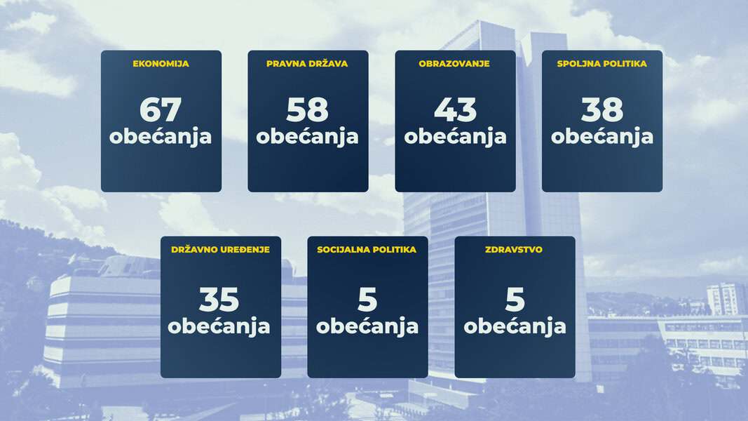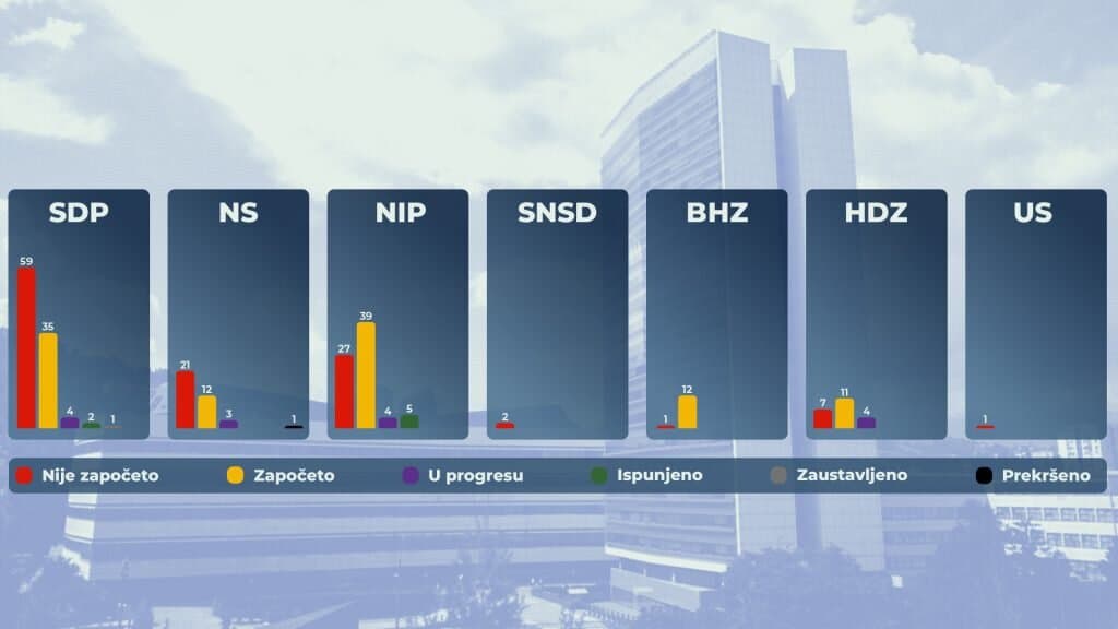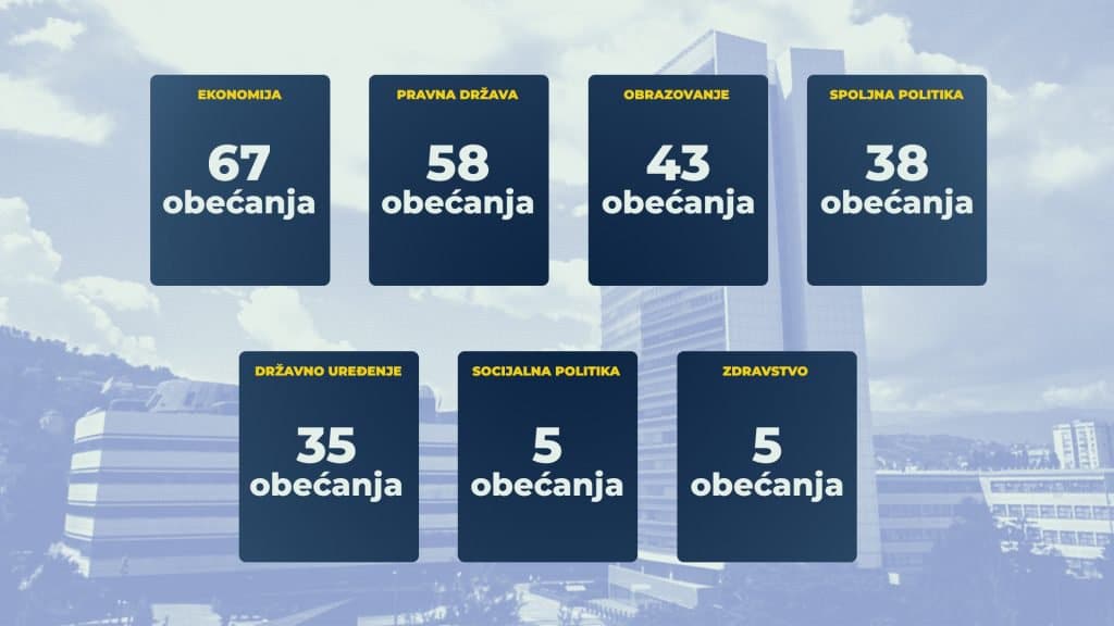 Rezultati monitoringa ispunjenosti predizbornih obećanja partija u vlasti na državnom nivou koje provodi Istinomjer pokazuju da ni u trećoj godini mandata nije došlo do ubrzanja njihove realizacije, iako su u pojedinim oblastima zabilježeni pomaci.