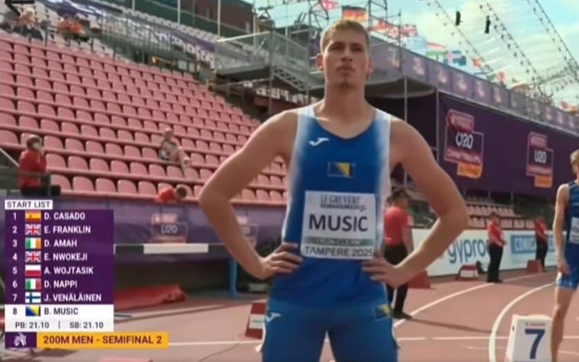Tuzlanski atletičar Bakir Musić izborio je plasman u finale trke na 200 metara na Evropskom prvenstvu za mlađe seniore (U20), koje se održava u finskom Tampereu. Finalna trka zakazana je za večeras u 17:45 sati, a Musić će imati priliku da se bori za jednu od medalja.