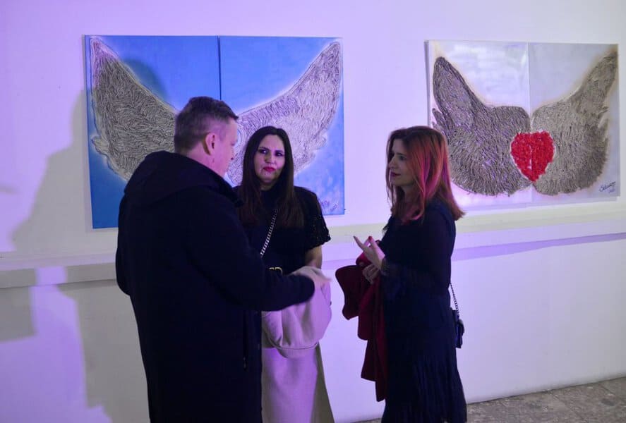 U Velikoj galeriji Bosanskog kulturnog centra u Tuzli sinoć je svečano otvorena izložba slika pod nazivom „Krila anđela“, koju potpisuje umjetnica Selma Hadžić. Riječ je o ciklusu radova velikog formata u kojem svaka slika obuhvata dva segmenta nastala kombiniranjem različitih tehnika i savremenih materijala, stvarajući bogatu simboliku i emotivnu dubinu.