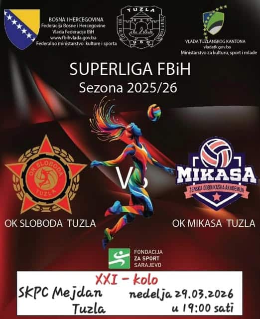 U nedjelju, 29. marta, u maloj dvorani SKPC Mejdan odigrat će se susret 21. kola Superlige FBiH za odbojkašice – grupa Sjever, između dvije tuzlanske i, na tabeli, vodeće ekipe prvenstva, Slobode i Mikase.