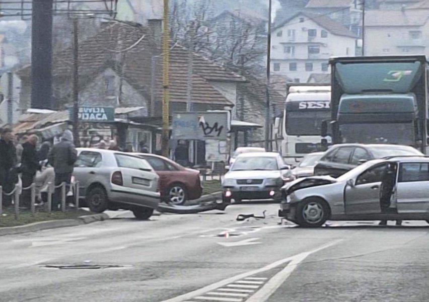 Nesreća se dogoduila u neposrednoj blizini Hametove pijace, a prema raspoloživim informacijama povrijeđene su tri osobe dok je na vozilima pričinjena velika materijalna šteta.