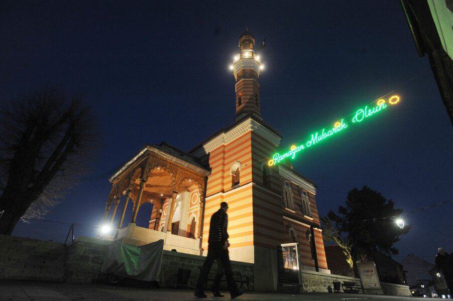 Nakon toga su se začuli ezani sa gradskih džamija, a munare su obasjala svjetla kandilja.