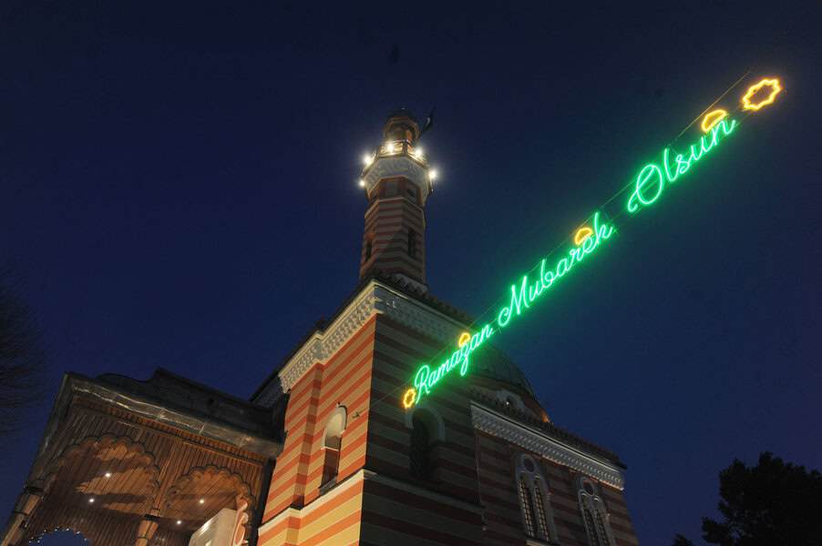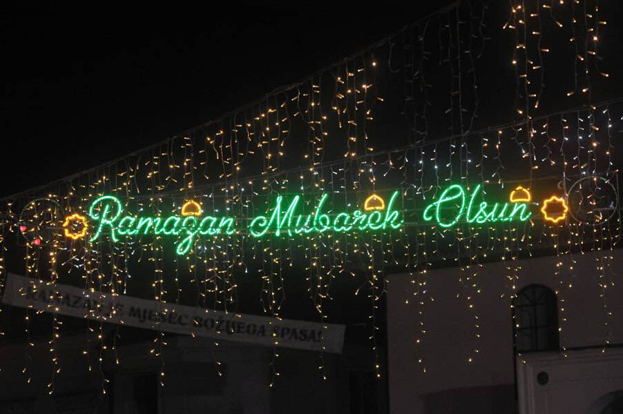 Nakon toga su se začuli ezani sa gradskih džamija, a munare su obasjala svjetla kandilja.