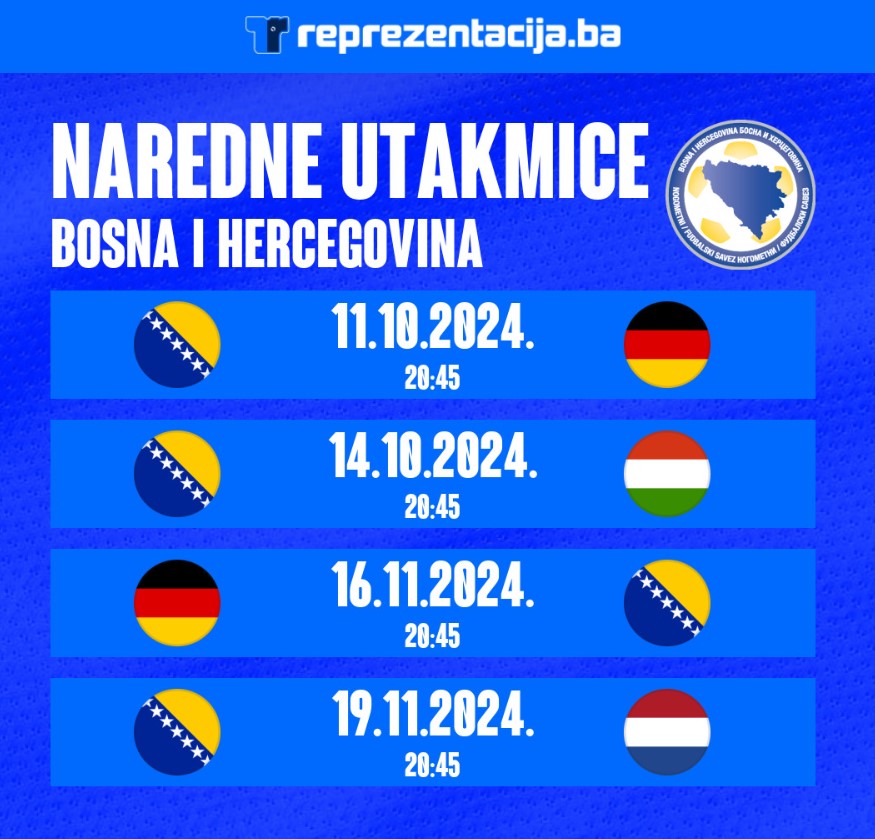 Fudbalska reprezentacija Bosne i Hercegovine u oktobru igra dvije domaće utakmice u okviru Lige nacija.